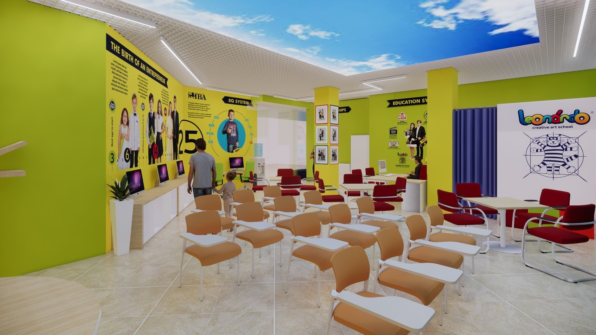Training classes should be an area of 20 to 100 m2, preferably equipped with lounge chairs convertible with "integrated table"; whiteboard, flipchart with paper and markers; screen; projector or a TV / monitor. It is desirable enclosure, the fence near the entrance to avoid hitting children on the roadway. Recommended location - business center of the city.