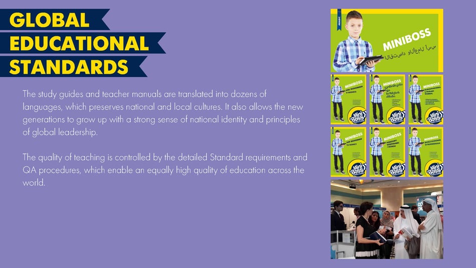 Our textbooks have been translated into dozens of languages that allows you to save the national traditions and to consider the local mentality, alsow allows on the basis of national identity to educate new generations on the principles of global leadership.