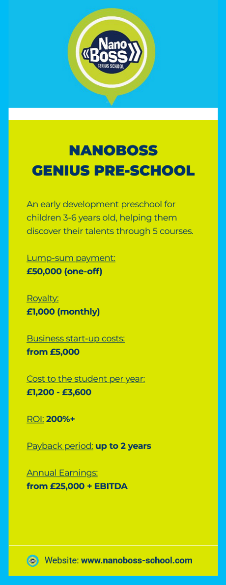 Join the NanoBoss Family and bring world-class early education to your community. With our turnkey solutions and expert support, you can own a NanoBoss Genius Pre-School and inspire the next generation of young geniuses!